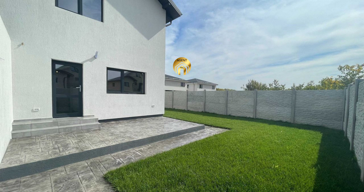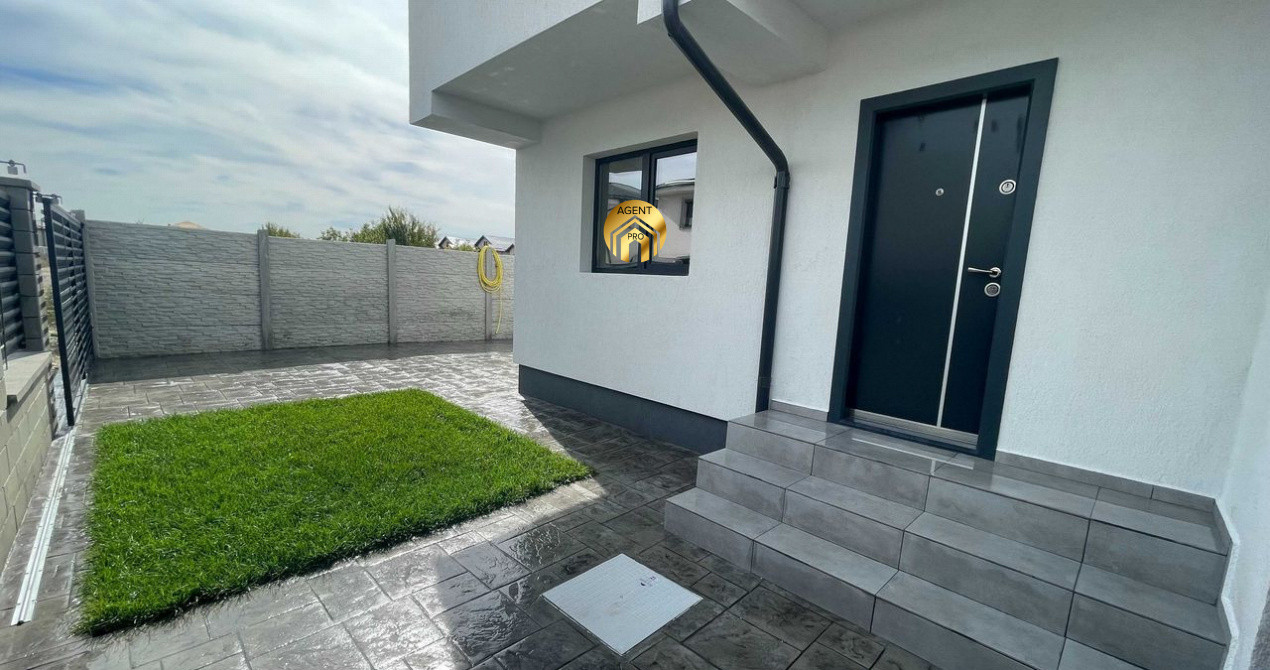 Dotări: încălzire în pardoseală, instalații Gewiss, curent trifazic (pregătire priză auto), gazon cu irigație, parcare și trotuare cu beton amprentat.