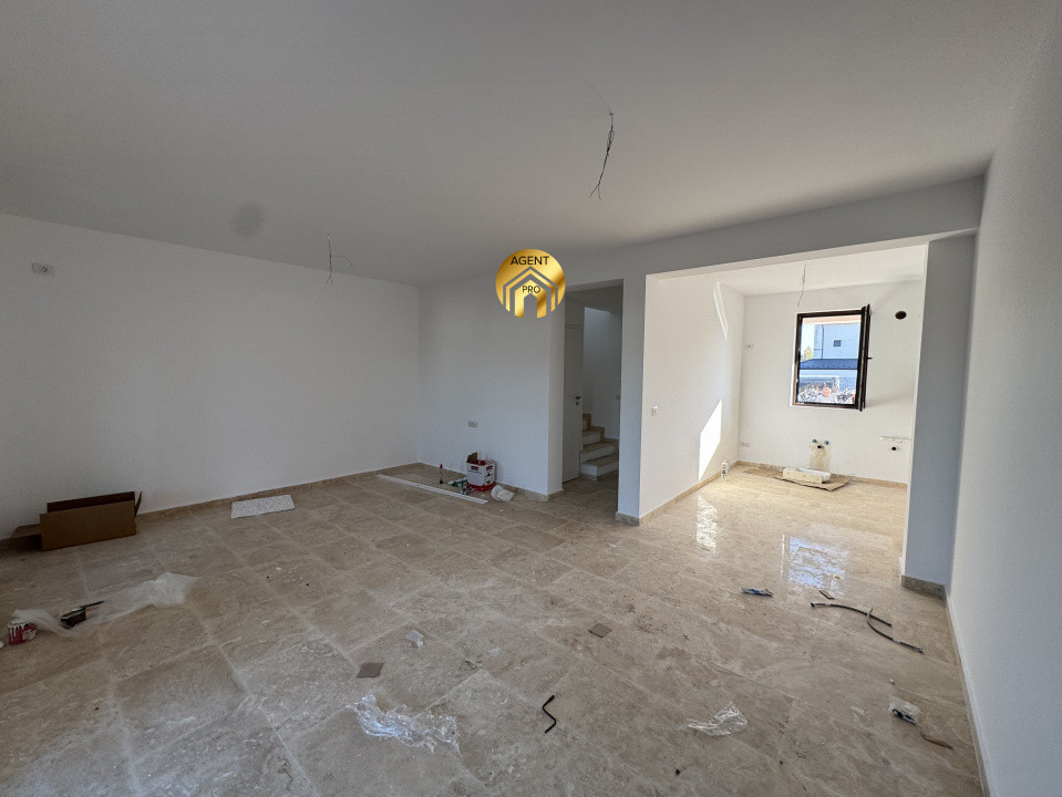 Parter: living, bucatarie inchisa/deschisa, baie, hol de acces, spatiu depozitare sub scara, terasa exterioara 18mp