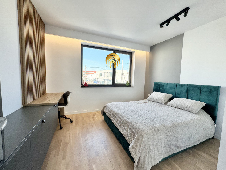 Etaj: 2 dormitoare cu o baie comuna, hol cu spatiu de depozitare, dormitor matrimonial cu baie, dressing si terasa.