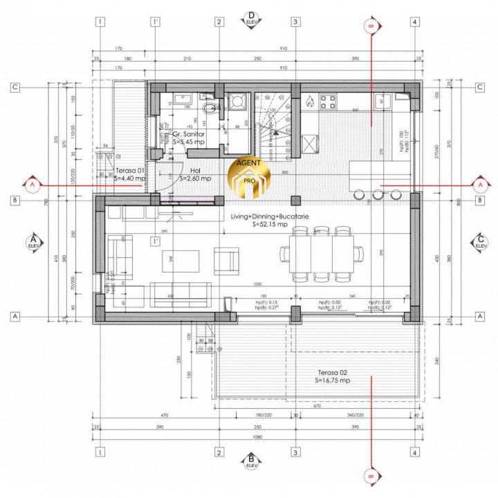Parter - terasa acces, hol de acces, bucatarie + living spatios cu iesire direct in terasa din spate, grup sanitar + spalatorie/depositare;