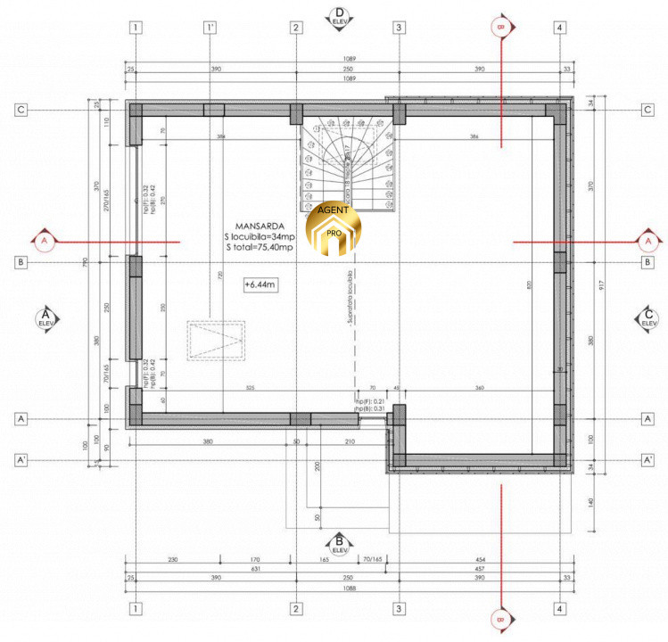 Mansarda - open space, ideal pentru doua dormitoare + spatiu de depozitare, birou, hobby room, sala de recreere, home cinema, fitness, etc.
