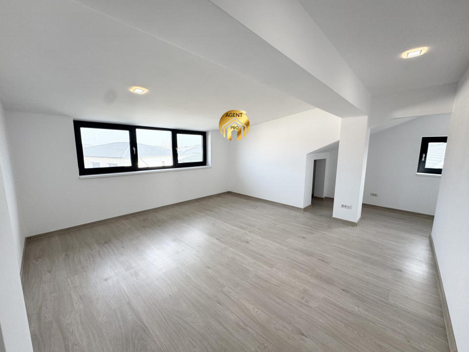 Mansarda: camera 24mp, + camera 7,6mp + spatii depozitare + BAIE, placa de beton, open space, lumina naturala, incalzire in pardoseala.
