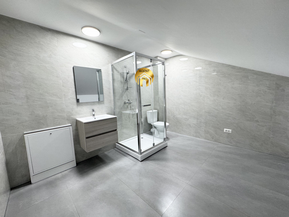 Mansarda: camera 24mp, + camera 7,6mp + spatii depozitare + BAIE, placa de beton, open space, lumina naturala, incalzire in pardoseala.