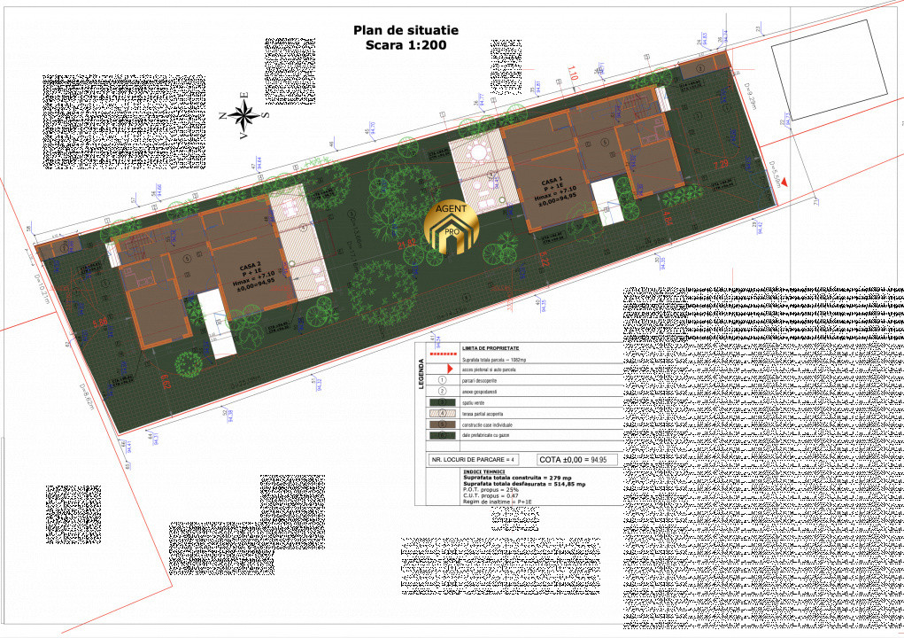 Terenul se vinde împreună cu documentație completă pentru construcția a două case: